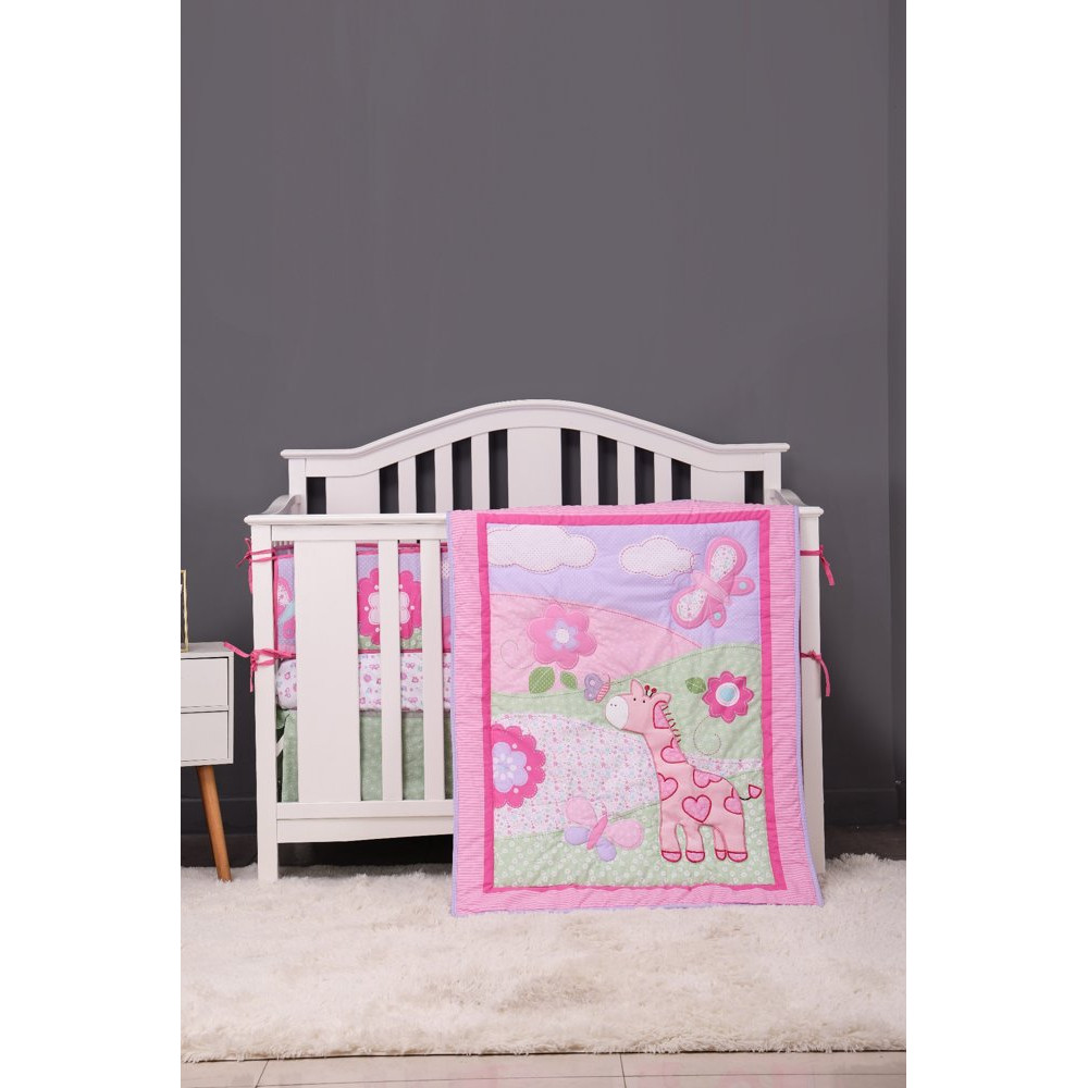 طقم مفرش سرير أطفال-6قطع - موديل "الفراشات الوردية