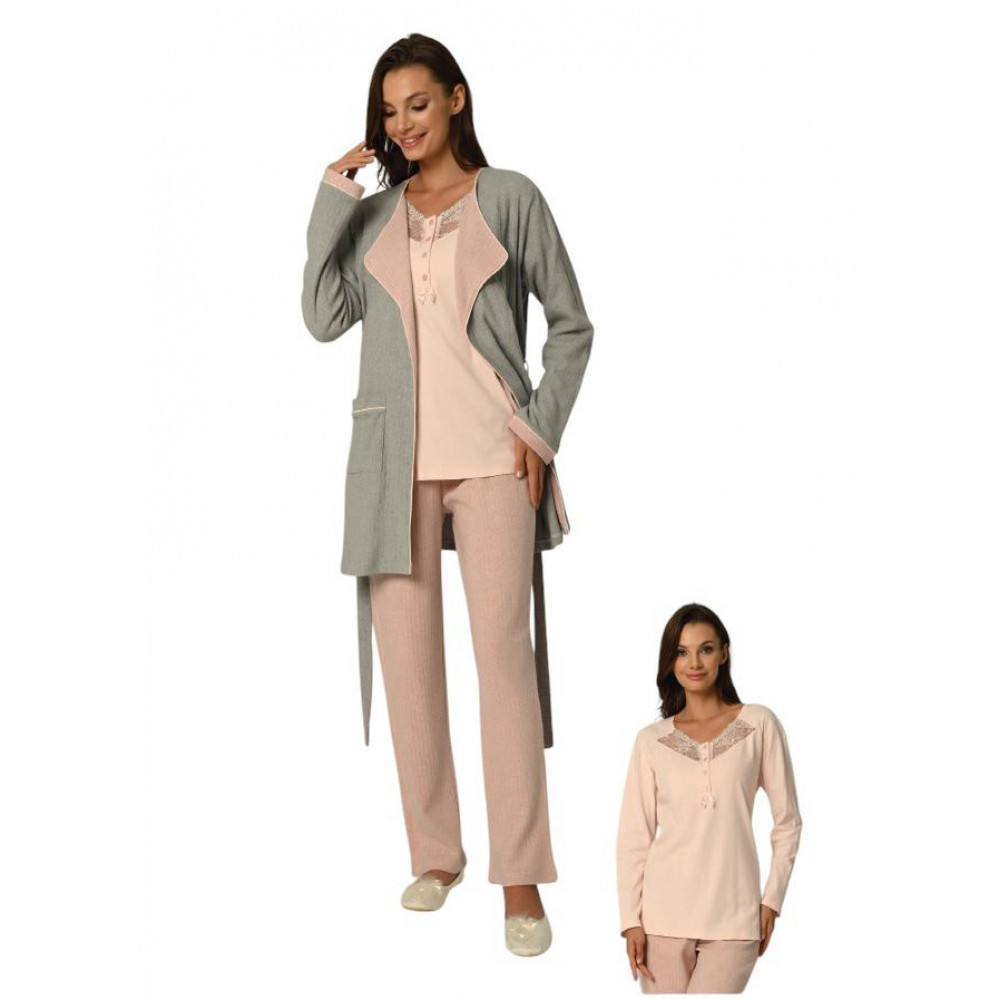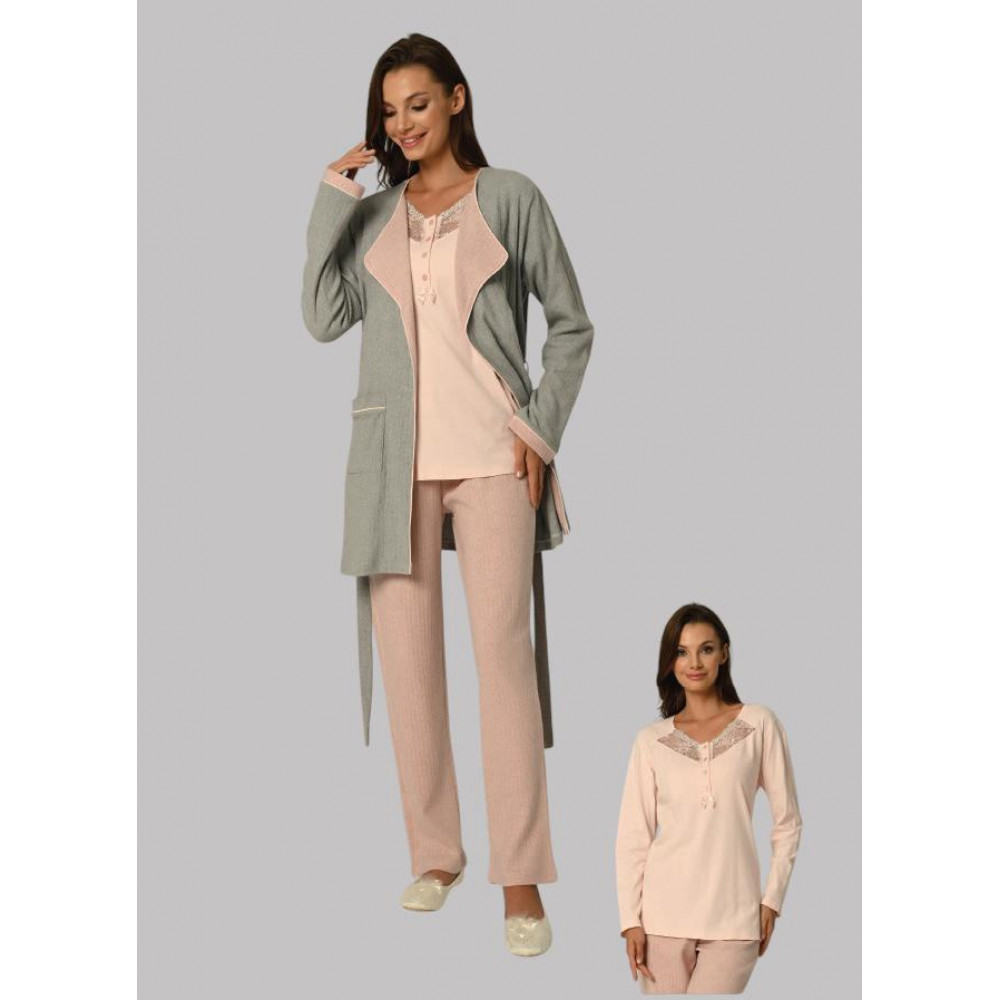 بيجاما حمل شتوية أنيقة من 3 قطع – دفء وراحة بإطلالة ناعمة