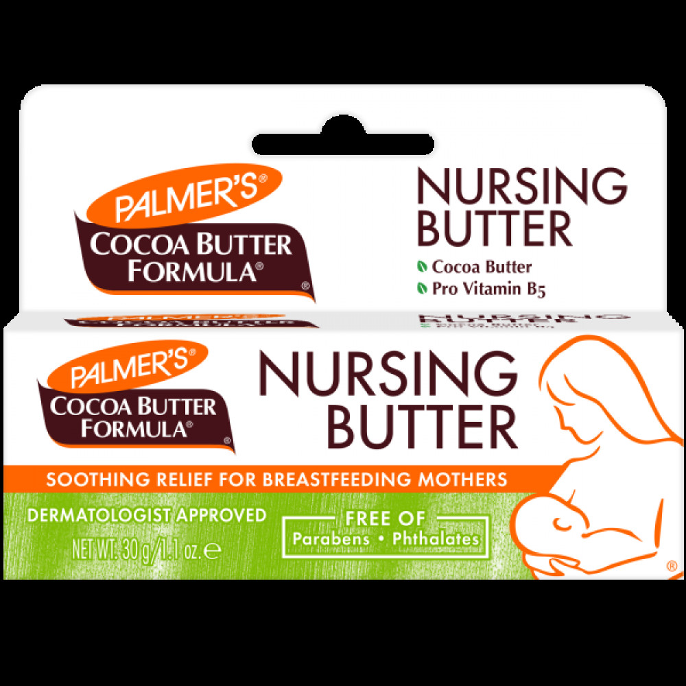 زبدة الرضاعة بتركيبة زبدة الكاكاو من بالمرز، مزيج سهل الاستخدام من زبدة الكاكاو النقية وبروفيتامين B5 (البانثينول) في قاعدة مُرطبة ومُهدئة، تُساعد على تخفيف تشققات الحلمات المصاحبة للرضاعة الطبيعية. كما يُمكن استخدامه قبل الولادة لترطيب الحلمات استعدادًا للرضاعة الطبيعية. مُختبر من قبل أطباء الجلدية.