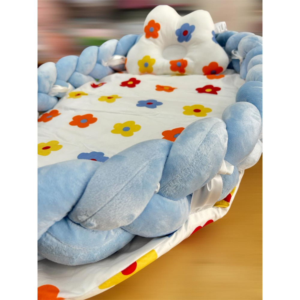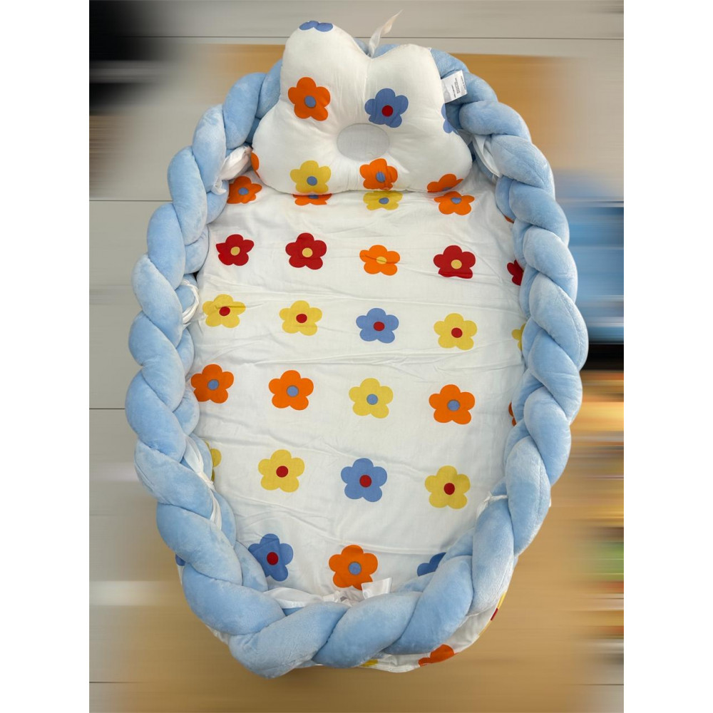 Baby Nest with Detachable Twist -Blue&Colorful Flowers