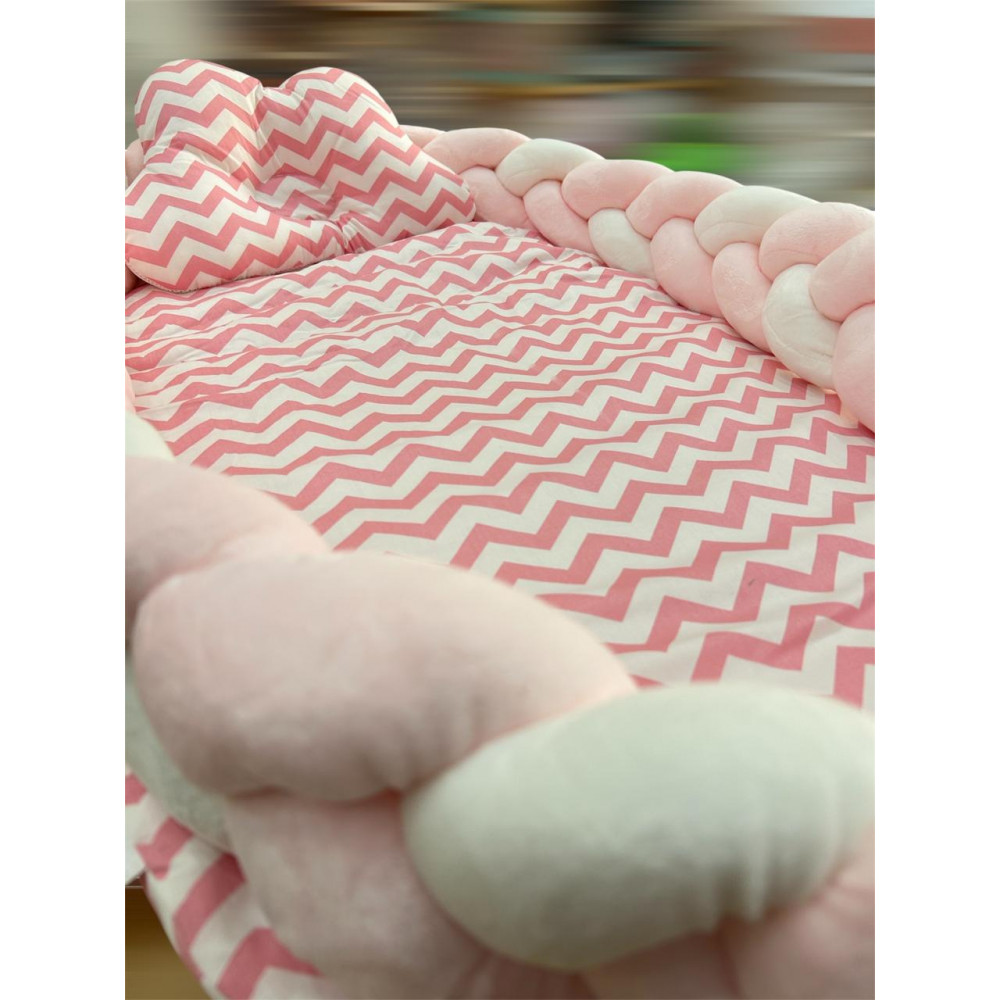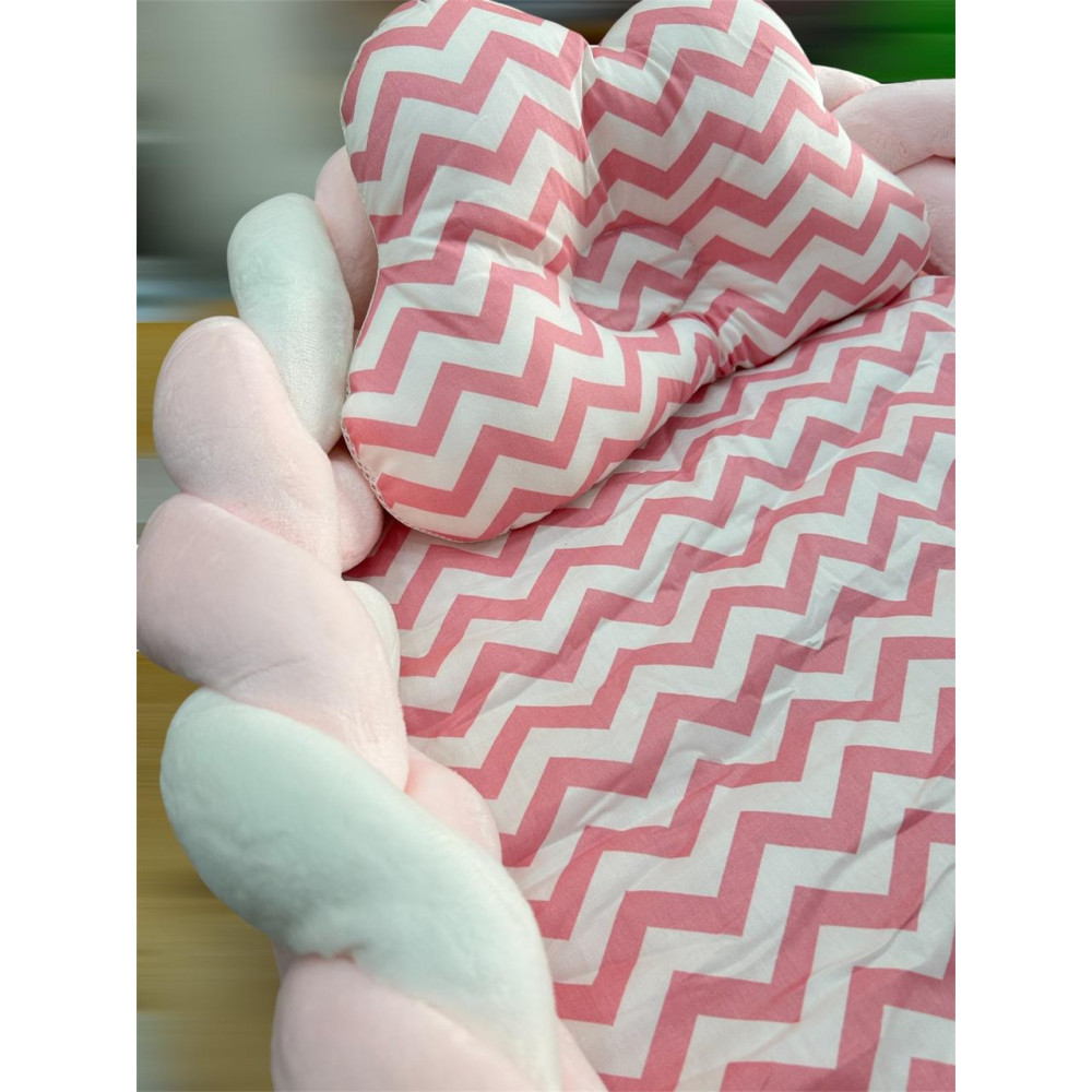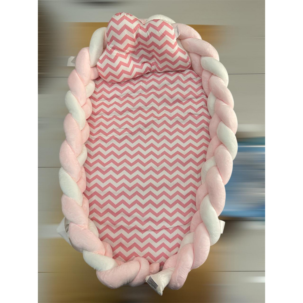 Baby Nest with Detachable Braid - Pink and White Zigzag