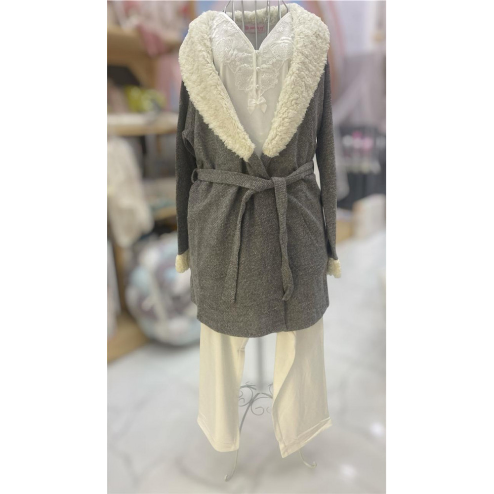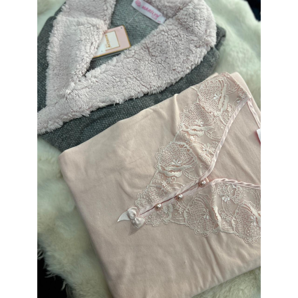 بجامه قطن مصوفه قبة دانتيل مع روب صوف قبه فرو